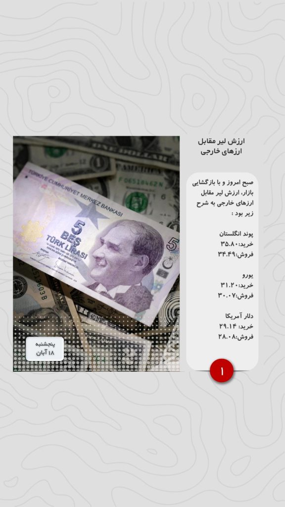 صبح امروز و با بازگشایی بازار، ارزش لیر مقابل ارزهای خارجی به شرح زیر بود :