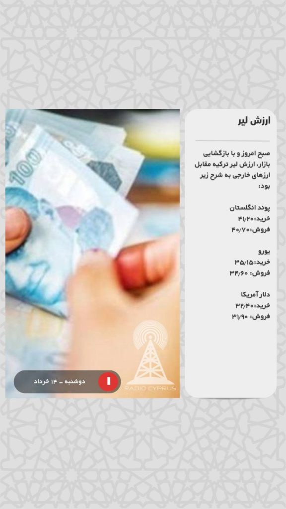 صبح امروز و با بازگشایی بازار، ارزش لیر ترکیه مقابل ارزهای خارجی به شرح زیر بود: