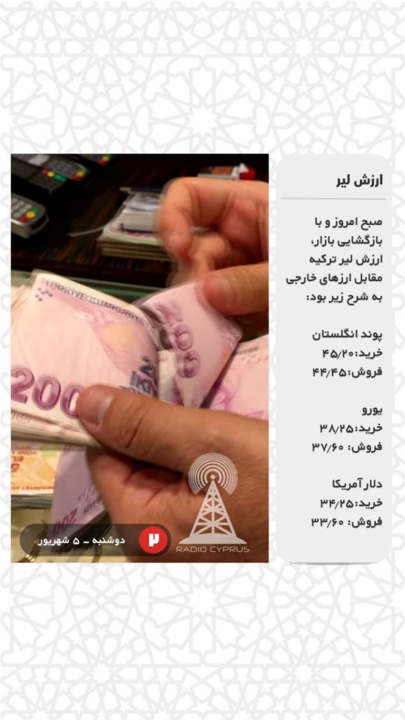 صبح امروز و با بازگشایی بازار، ارزش لیر ترکیه مقابل ارزهای خارجی به شرح زیر بود: