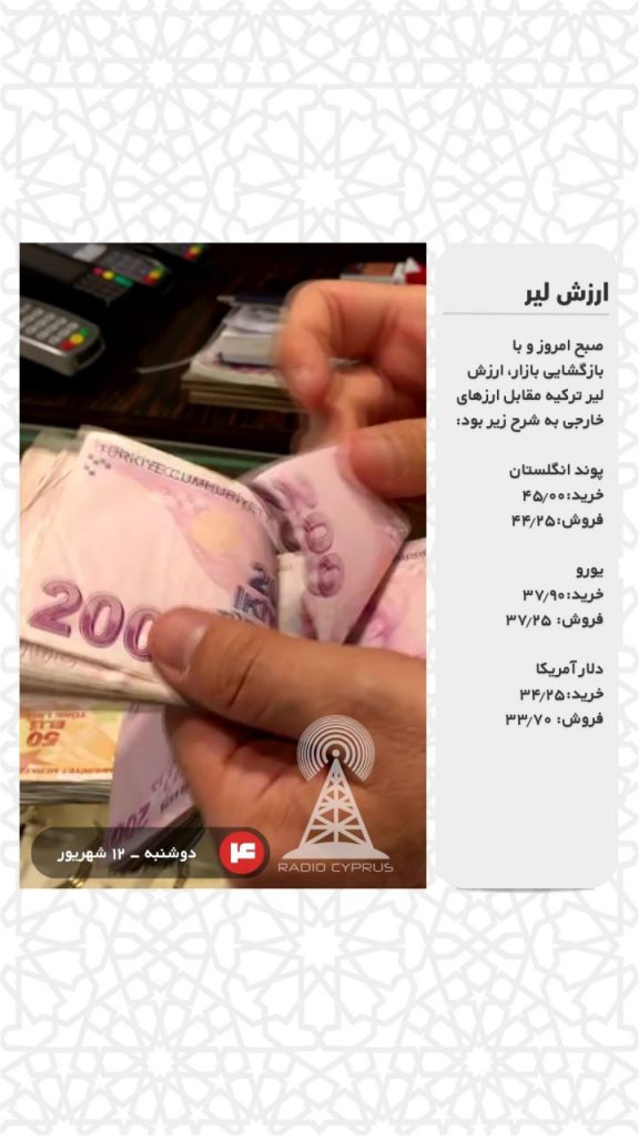 صبح امروز و با بازگشایی بازار، ارزش لیر ترکیه مقابل ارزهای خارجی به شرح زیر بود: