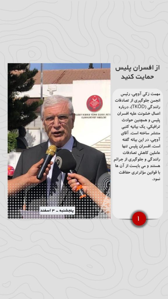 مهمت زکی آوچی، رئیس انجمن جلوگیری از تصادفات رانندگی (TKÖD)، درباره اعمال خشونت علیه افسران پلیس و همچنین حوادث ترافیکی، یک بیانیه کتبی منتشر ساخته است. آقای آوچی، در این بیانه گفته است، افسران پلیس تنها عاملین کاهش تصادفات رانندگی و جلوگیری از جرائم هستند و می بایست از آن ها با قوانین مؤثرتری حفاظت نمود.