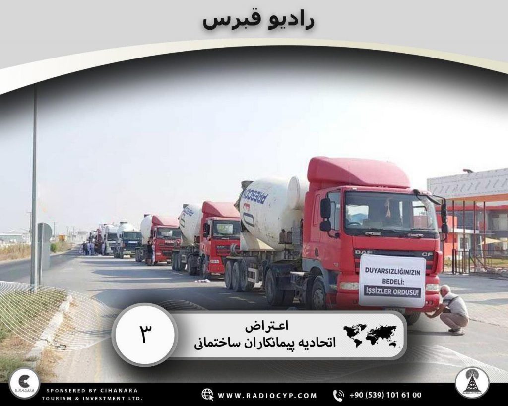 ساعت ۹ صبح اتحادیه پیمانکاران ساختمانی قبرس شمالی با خودروهایشان اعتصابی را آغاز کردند. اعضای اتحادیه در عملیاتی که در مقابل نخست وزیر انجام می شود شرکت می کنند، ملاقات در محل تقاطع جاده گورجینلیک گزارش شده است. پیش بینی می شود تقریباً ۳۰۰ دستگاه خودرو جمع آوری شده و به پایتخت منتقل شوند، بسیاری از وسایل نقلیه تجاری از چهارراه ارجان و دیرمنلیک به کاروان خودرو اضافه می شوند.(منبع:خبرگزاری قبرس)