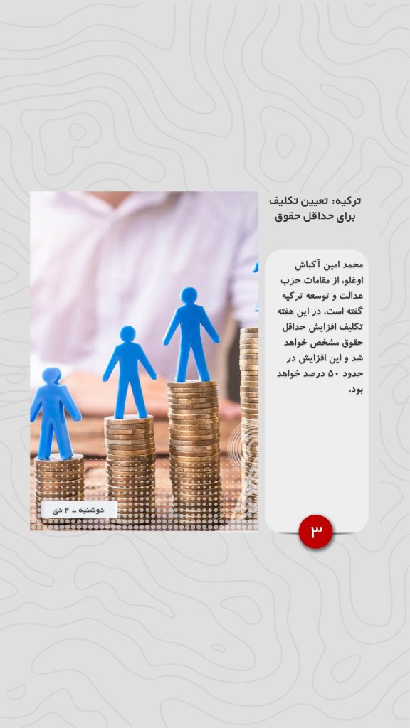 محمد امین آکباش اوغلو، از مقامات حزب عدالت و توسعه ترکیه گفته است، در این هفته تکلیف افزایش حداقل حقوق مشخص خواهد شد و این افزایش در حدود ۵۰ درصد خواهد بود.