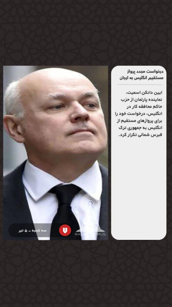 ایین دانکن اسمیت، نماینده پارلمان از حزب حاکم محافظه کار در انگلیس، درخواست خود را برای پروازهای مستقیم از انگلیس به جمهوری ترک قبرس شمالی تکرار کرد.