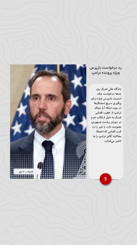 دادگاه عالی فدرال روز جمعه درخواست جک اسمیت، بازپرس ویژه برای پیگیری سریع استدلالها در مورد اینکه آیا دونالد ترامپ از تعقیب قضایی فدرال به دلیل ارتکاب جرم در دوران ریاست جمهوری، مصونیت دارد یا خیر را رد کرد، اقدامی که احتمالا محاکمه آقای ترامپ را به تاخیر میاندازد.