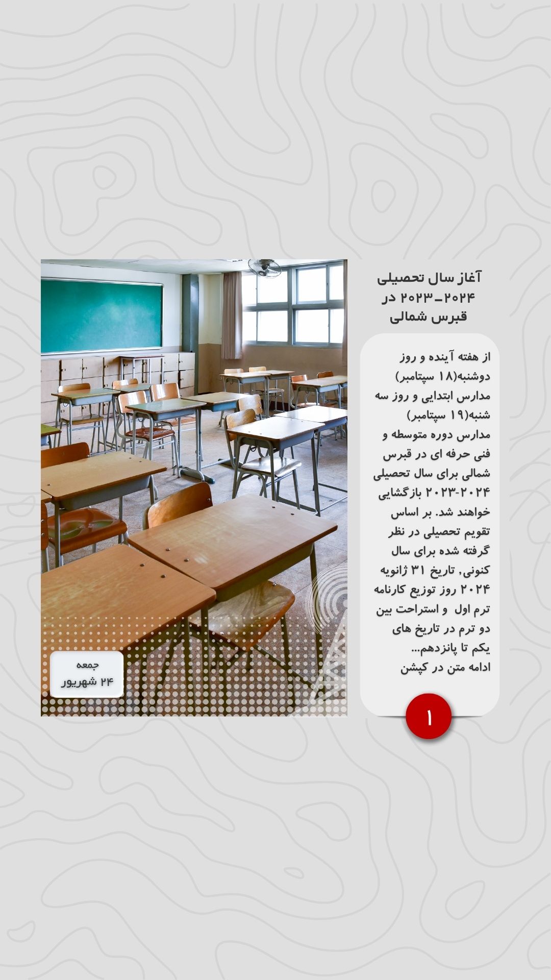 از هفته آینده و روز دوشنبه(۱۸ سپتامبر) مدارس ابتدایی و روز سه شنبه(۱۹ سپتامبر) مدارس دوره متوسطه و فنی حرفه ای در قبرس شمالی برای سال تحصیلی ۲۰۲۴-۲۰۲۳ بازگشایی خواهند شد. بر اساس تقویم تحصیلی در نظر گرفته شده برای سال کنونی, تاریخ ۳۱ ژانویه ۲۰۲۴ روز توزیع کارنامه ترم اول و استراحت بین دو ترم در تاریخ های یکم تا پانزدهم ماه فوریه خواهند بود. ترم دوم نیز از تاریخ شانزدهم فوریه آغاز و توزیع کارنامه ترم دوم در تاریخ چهاردهم ژوئن می باشد.