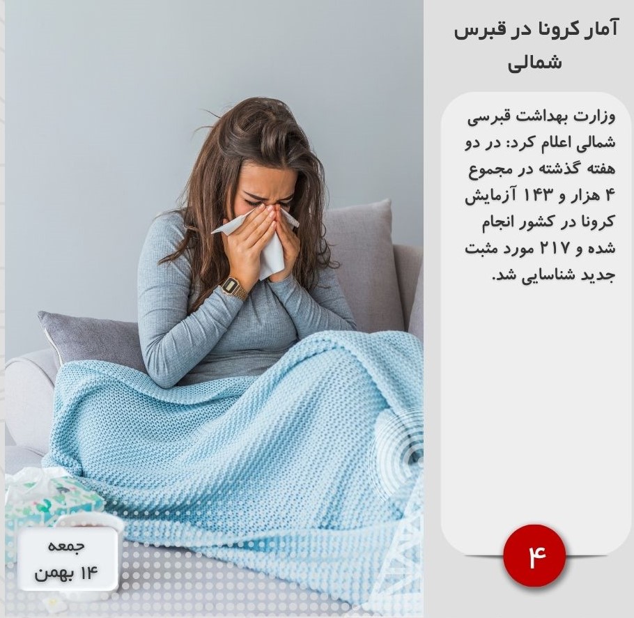 وزارت بهداشت قبرسی شمالی اعلام کرد: در دو هفته گذشته در مجموع ۴ هزار و ۱۴۳ آزمایش کرونا در کشور انجام شده و ۲۱۷ مورد مثبت جدید شناسایی شد.