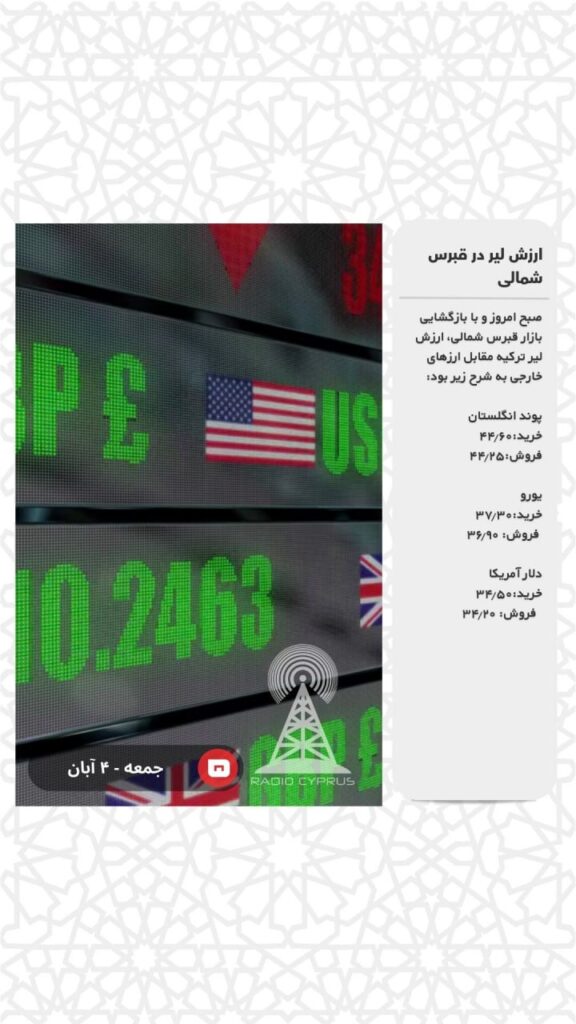 صبح امروز و با بازگشایی بازار قبرس شمالی، ارزش لیر ترکیه مقابل ارزهای خارجی به شرح زیر بود: