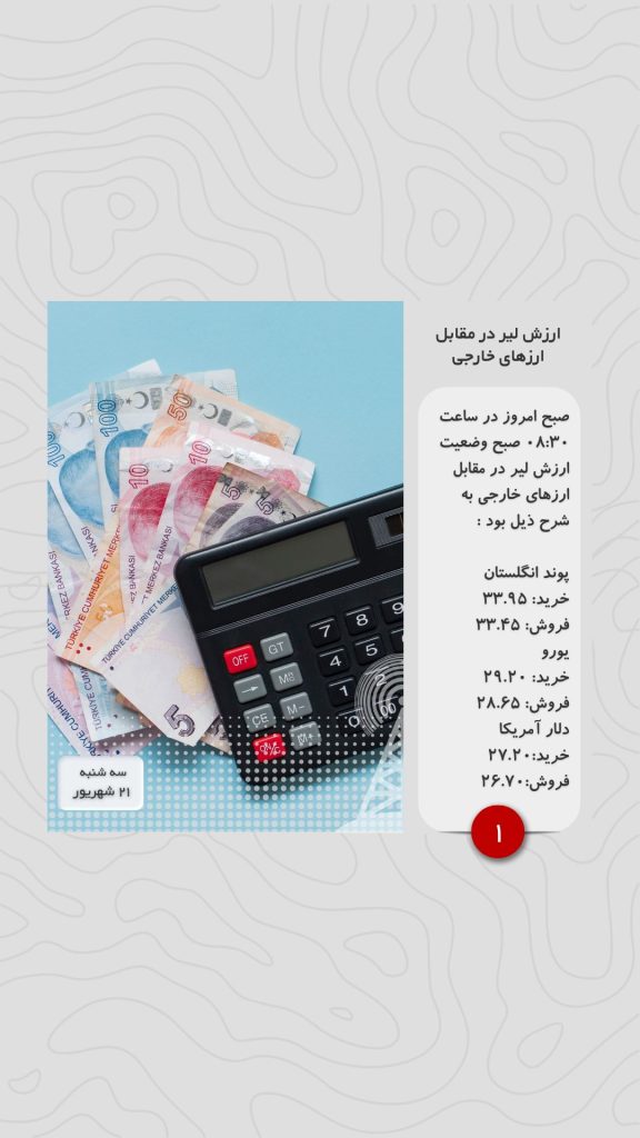 صبح امروز در ساعت ۰۸:۳۰ صبح وضعیت ارزش لیر در مقابل ارزهای خارجی به شرح ذیل بود :