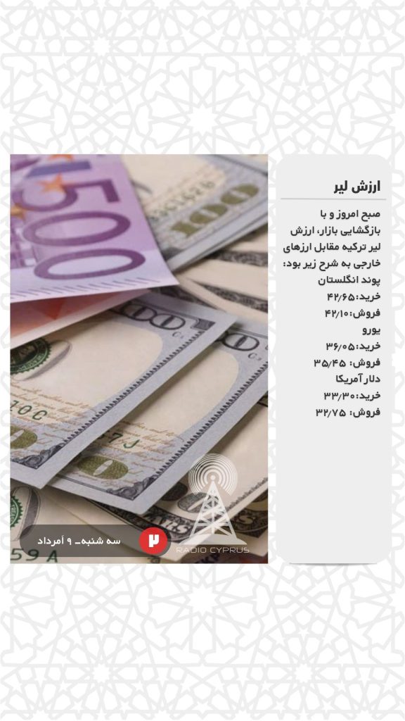 صبح امروز و با بازگشایی بازار، ارزش لیر ترکیه مقابل ارزهای خارجی به شرح زیر بود:
