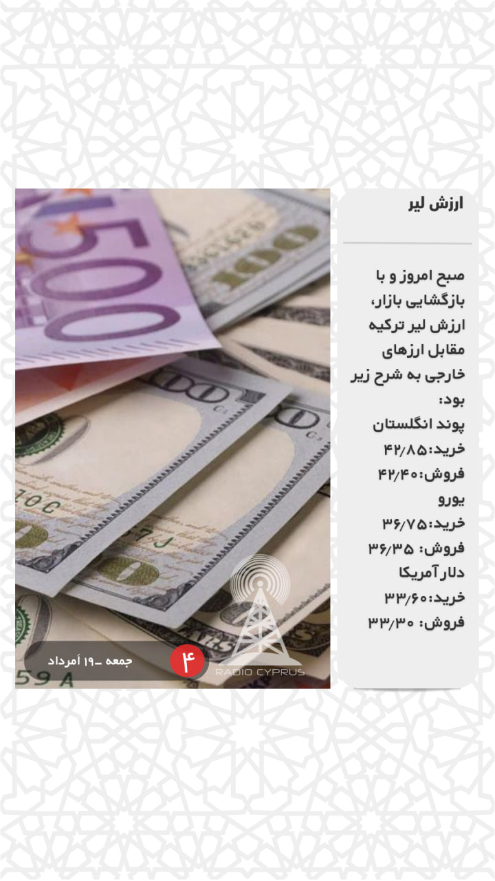 صبح امروز و با بازگشایی بازار، ارزش لیر ترکیه مقابل ارزهای خارجی به شرح زیر بود:
