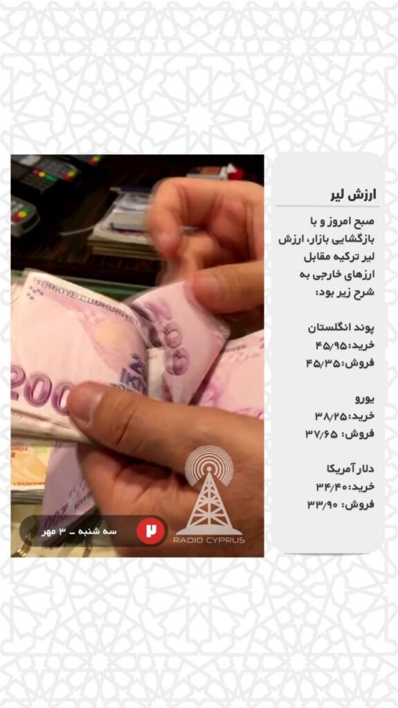 صبح امروز و با بازگشایی بازار، ارزش لیر ترکیه مقابل ارزهای خارجی به شرح زیر بود: