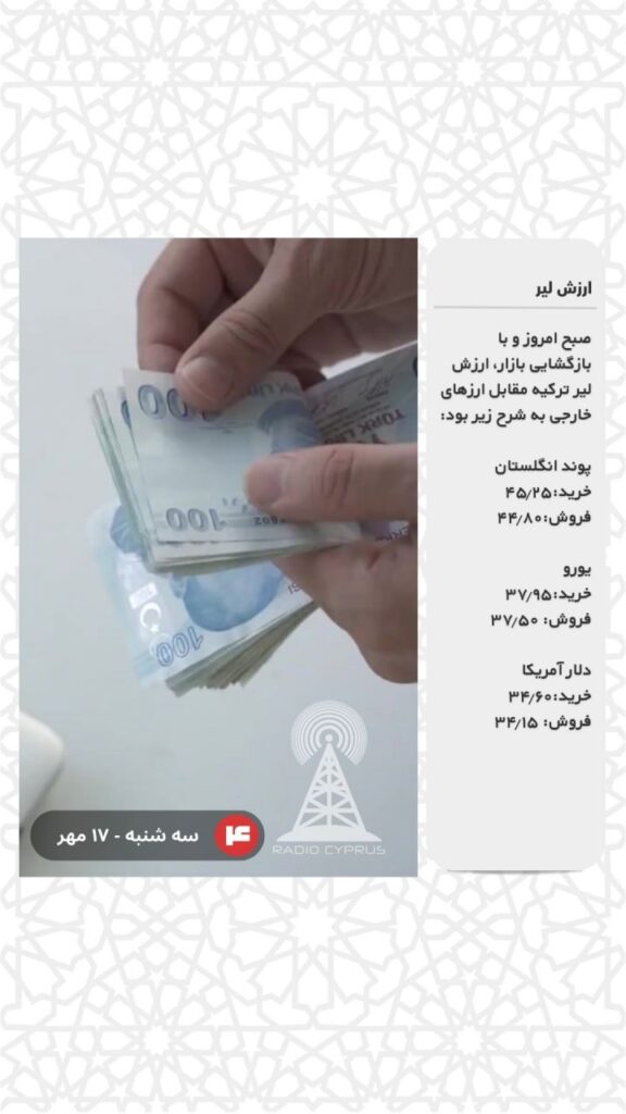 صبح امروز و با بازگشایی بازار، ارزش لیر ترکیه مقابل ارزهای خارجی به شرح زیر بود: