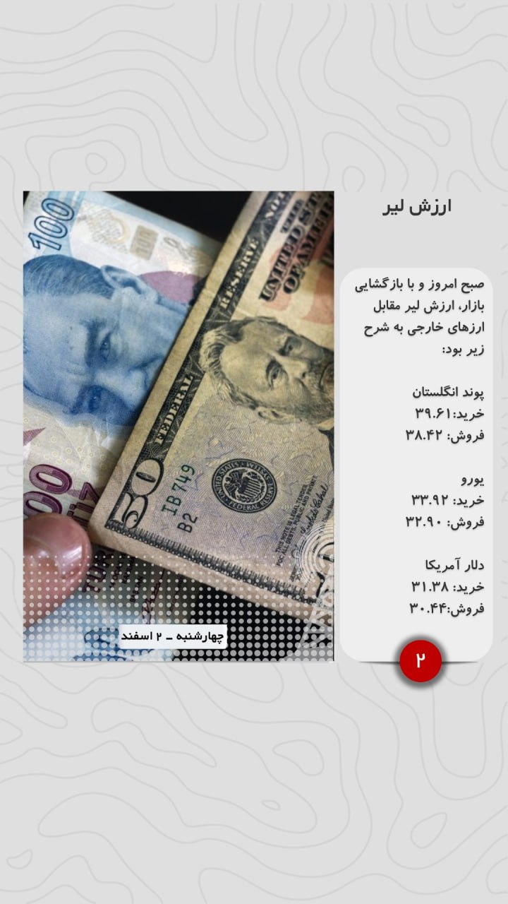 صبح امروز و با بازگشایی بازار، ارزش لیر مقابل ارزهای خارجی به شرح زیر بود: