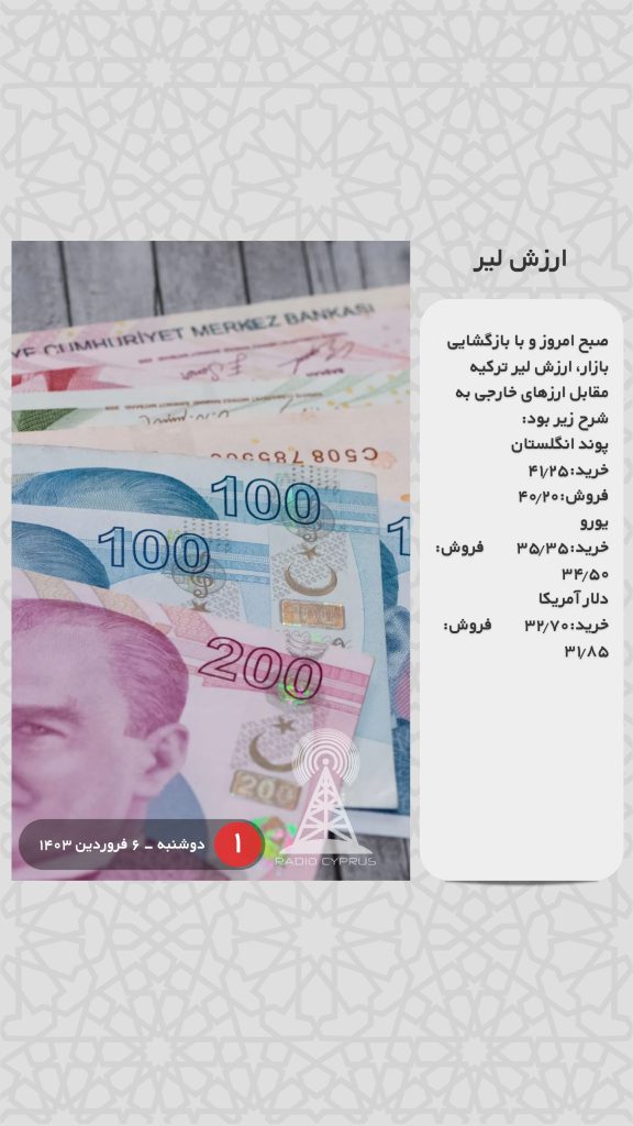 صبح امروز و با بازگشایی بازار، ارزش لیر ترکیه مقابل ارزهای خارجی به شرح زیر بود: