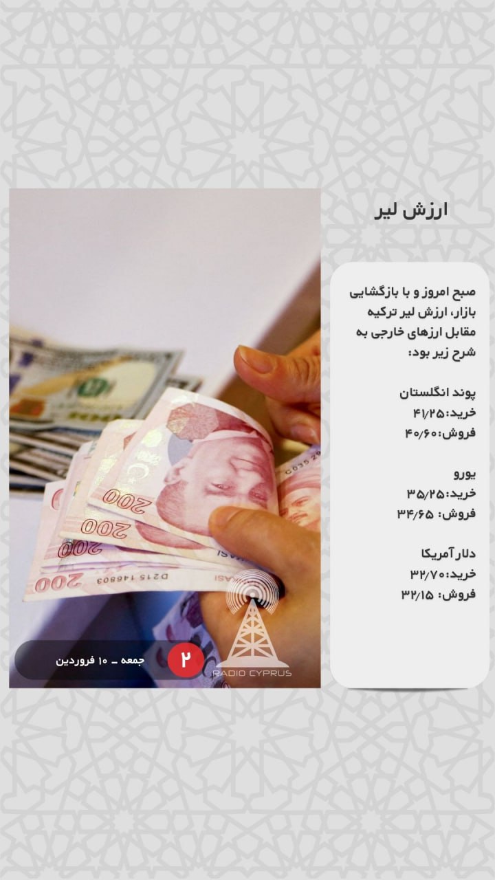 صبح امروز و با بازگشایی بازار، ارزش لیر ترکیه مقابل ارزهای خارجی به شرح زیر بود: