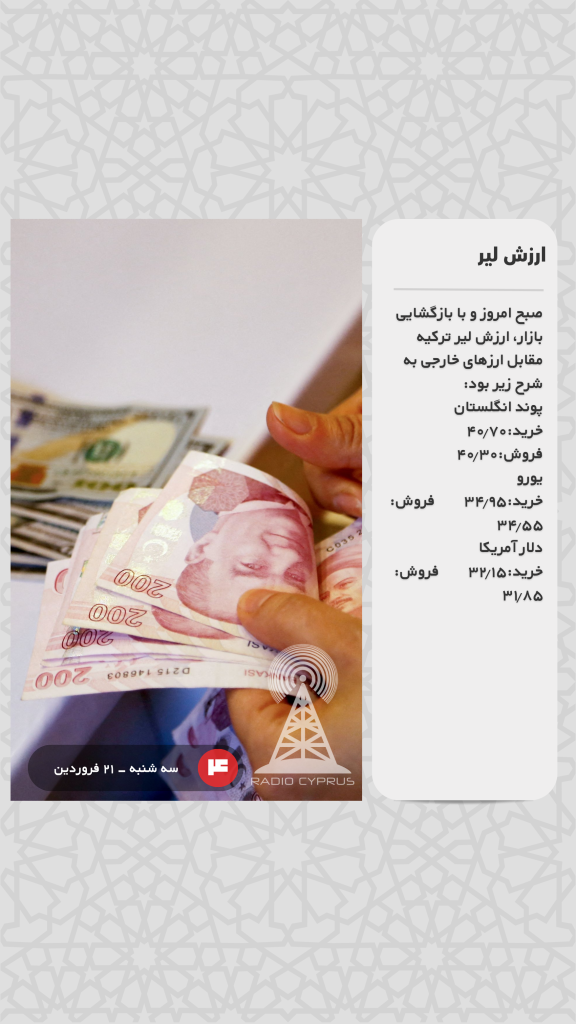 صبح امروز و با بازگشایی بازار، ارزش لیر ترکیه مقابل ارزهای خارجی به شرح زیر بود: