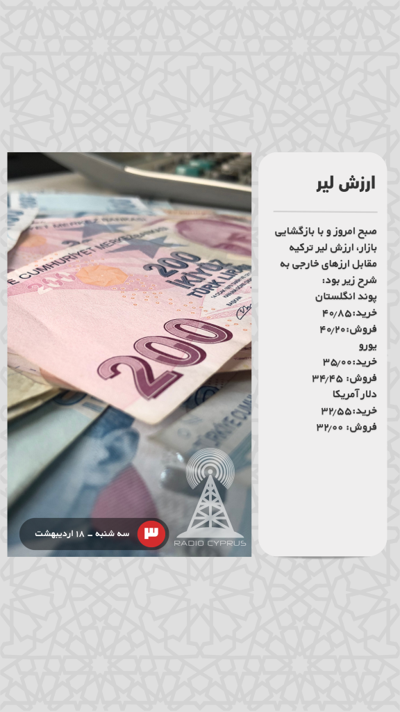صبح امروز و با بازگشایی بازار، ارزش لیر ترکیه مقابل ارزهای خارجی به شرح زیر بود: