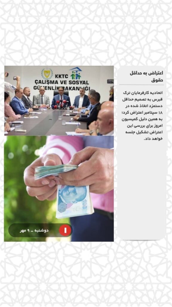 اتحادیه کارفرمایان ترک قبرس به تصمیم حداقل دستمزد اتخاذ شده در ۱۸ سپتامبر اعتراض کرد؛ به همین دلیل کمیسیون امروز برای بررسی این اعتراض تشکیل جلسه خواهد داد.