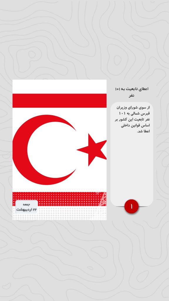 از سوی شورای وزیران قبرس شمالی به ۱۰۱ نفر تابعیت این کشور بر اساس قوانین داخلی اعطا شد.