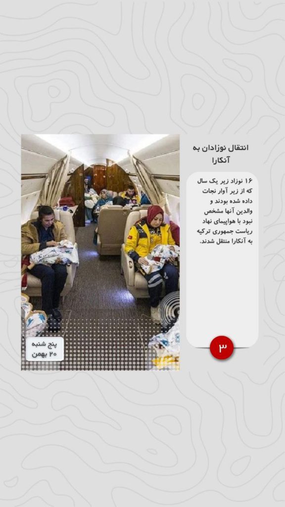۱۶ نوزاد زیر یک سال که از زیر آوار نجات داده شده بودند و والدین آنها مشخص نبود با هواپیمای نهاد ریاست جمهوری ترکیه به آنکارا منتقل شدند.