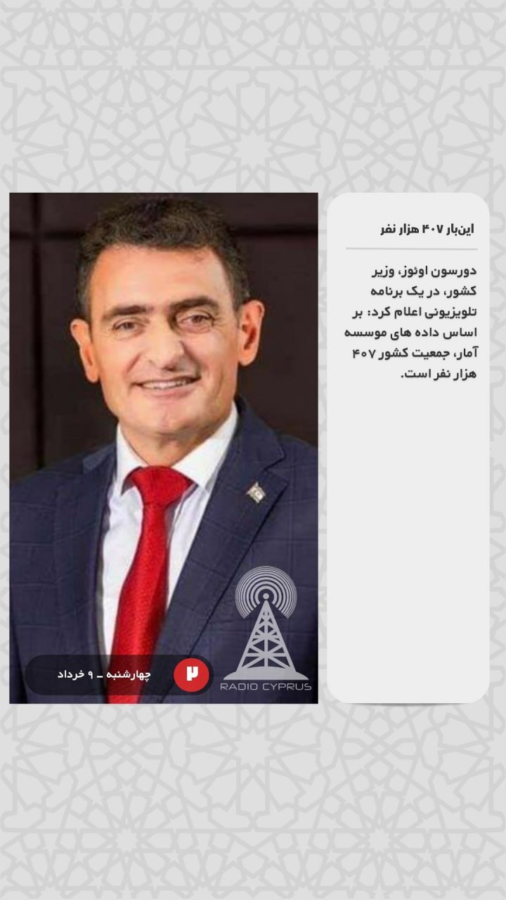 دورسون اوئوز، وزیر کشور، در یک برنامه تلویزیونی اعلام کرد: بر اساس داده های موسسه آمار، جمعیت کشور ۴۰۷ هزار نفر است.