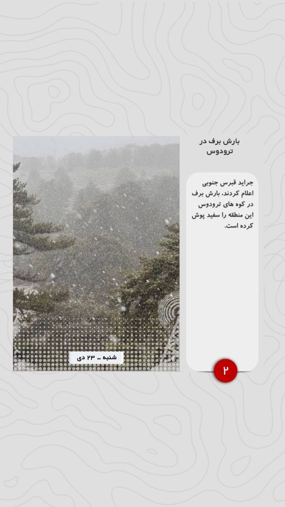 جراید قبرس جنوبی اعلام کردند، بارش برف در کوه های ترودوس این منطقه را سفید پوش کرده است.