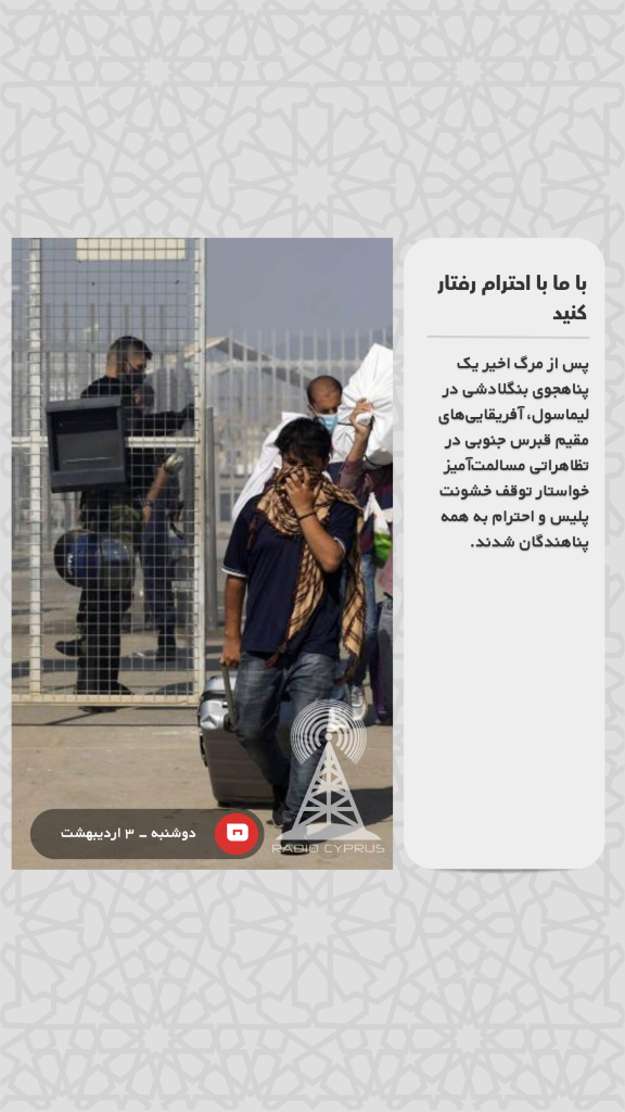پس از مرگ اخیر یک پناهجوی بنگلادشی در لیماسول، آفریقایی‌های مقیم قبرس جنوبی در تظاهراتی مسالمت‌آمیز خواستار توقف خشونت پلیس و احترام به همه پناهندگان شدند.