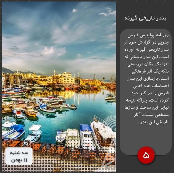 روزنامه پولیتیس قبرس جنوبی در گزارش خود از بندر تاریخی گیرنه آورده است، این بندر باستانی نه تنها یک مکان توریستی، بلکه یک اثر فرهنگی است. بازسازی این بندر احساسات همه اهالی قبرس را در گیر خود کرده است، چراکه نتیجه نهایی این ساخت و سازها مشخص نیست. آثار تاریخی این بندر توسط اتحادیه اروپا بازرسی نشده است در حالی که بررسی های دقیق در این خصوص مورد نیاز است.