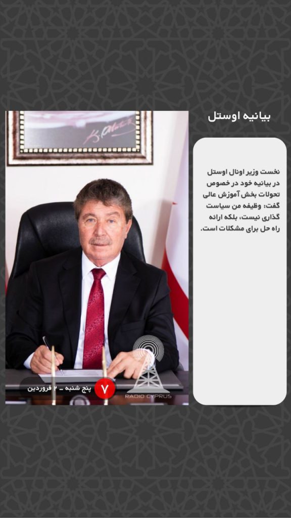 نخست وزیر اونال اوستل در بیانیه خود در خصوص تحولات بخش آموزش عالی گفت: وظیفه من سیاست گذاری نیست، بلکه ارائه راه حل برای مشکلات است.