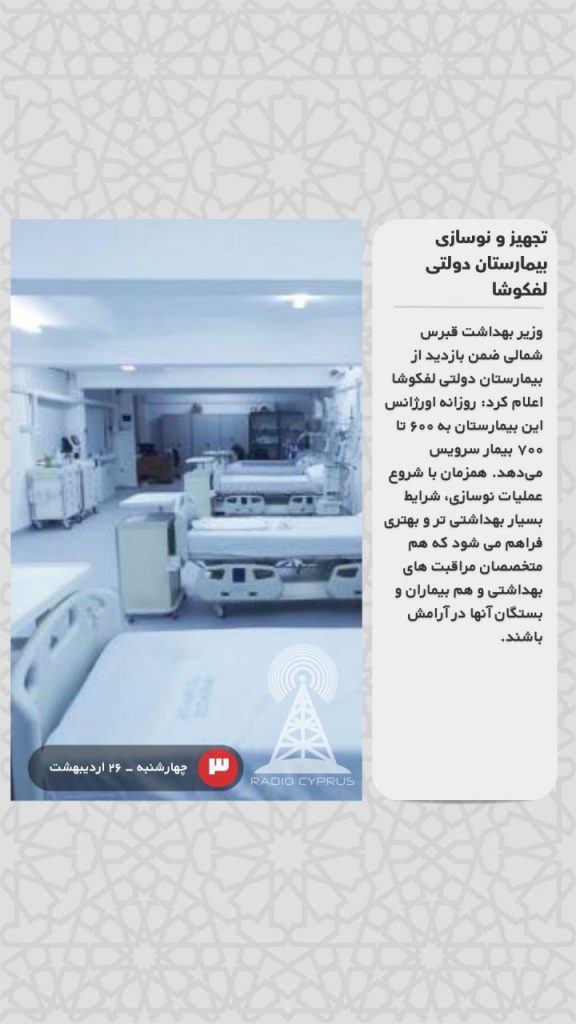 وزیر بهداشت قبرس شمالی ضمن بازدید از بیمارستان دولتی لفکوشا اعلام کرد: روزانه اورژانس این بیمارستان به ۶۰۰ تا ۷۰۰ بیمار سرویس میدهد. همزمان با شروع عملیات نوسازی، شرایط بسیار بهداشتی تر و بهتری فراهم می شود که هم متخصصان مراقبت های بهداشتی و هم بیماران و بستگان آنها در آرامش باشند.