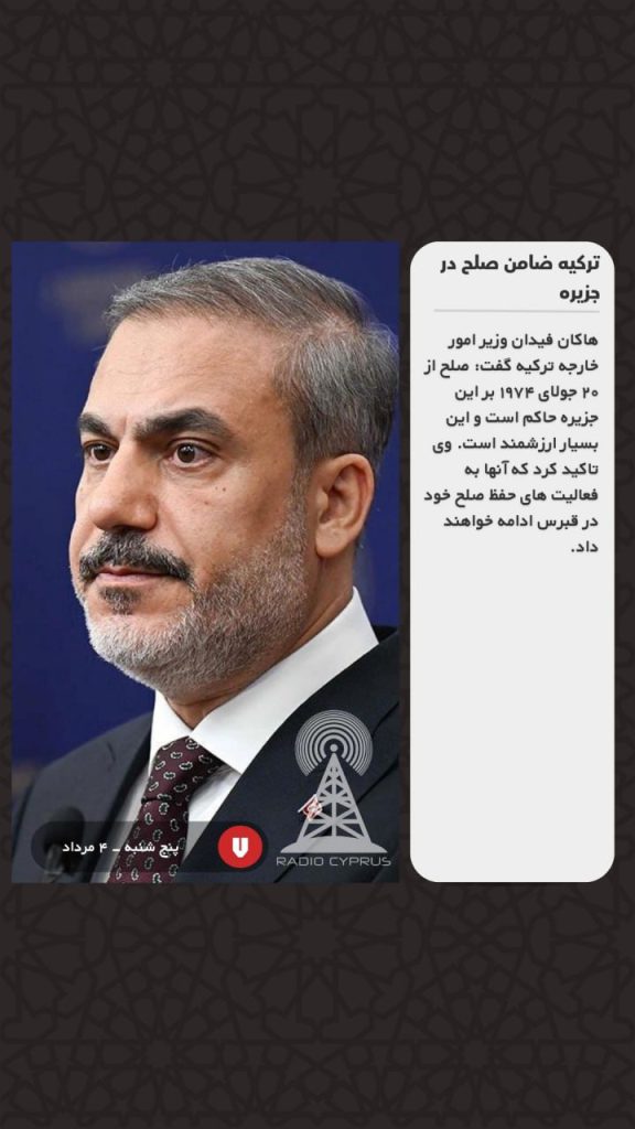 هاکان فیدان وزیر امور خارجه ترکیه گفت: صلح از ۲۰ جولای ۱۹۷۴ بر این جزیره حاکم است و این بسیار ارزشمند است. وی تاکید کرد که آنها به فعالیت های حفظ صلح خود در قبرس ادامه خواهند داد.
