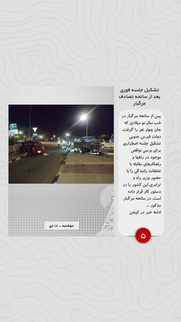 تشکیل جلسه فوری بعد از سانحه تصادف مرگبار