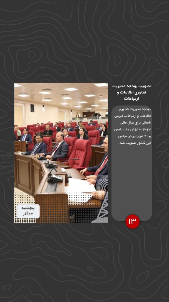 بودجه مدیریت فناوری اطلاعات و ارتباطات قبرس شمالی برای سال مالی ۲۰۲۴ به ارزش ۸۲ میلیون و ۴۲ هزار لیر در مجلس این کشور تصویب شد.