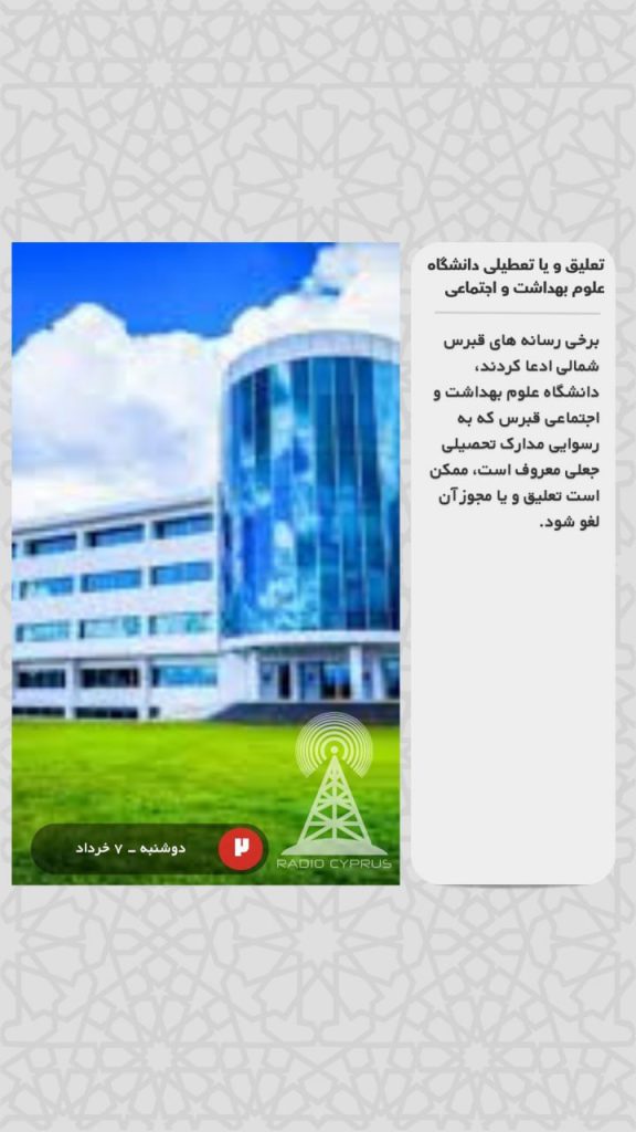 برخی رسانه های قبرس شمالی ادعا کردند، دانشگاه علوم بهداشت و اجتماعی قبرس که به رسوایی مدارک تحصیلی جعلی معروف است، ممکن است تعلیق و یا مجوز آن لغو شود.