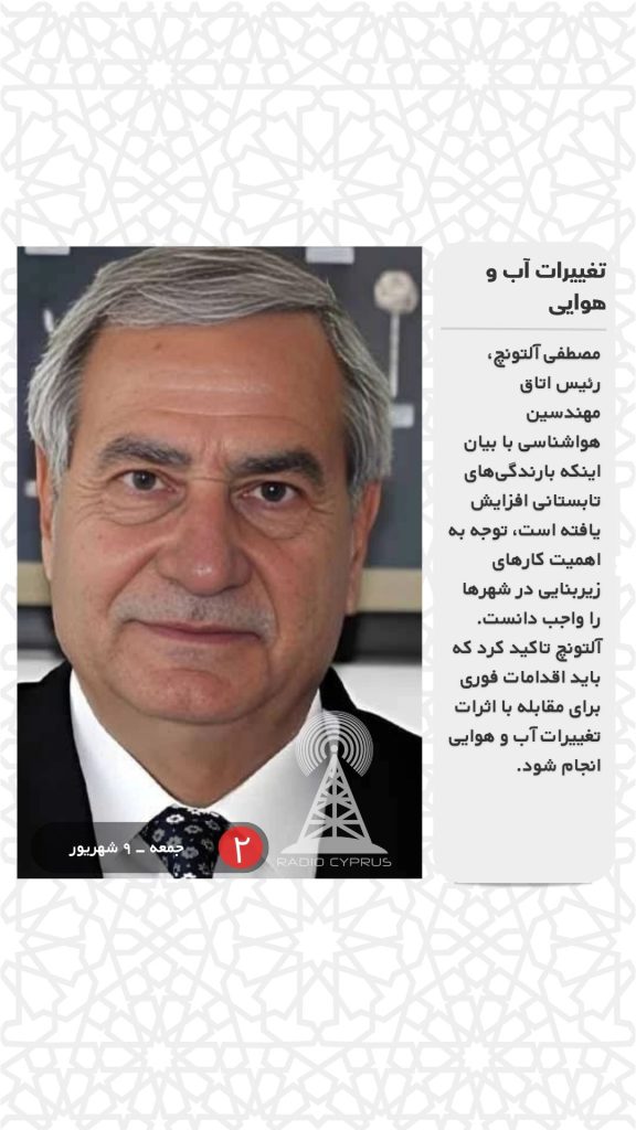 مصطفی آلتونچ، رئیس اتاق مهندسین هواشناسی با بیان اینکه بارندگیهای تابستانی افزایش یافته است، توجه به اهمیت کارهای زیربنایی در شهرها را واجب دانست. آلتونچ تاکید کرد که باید اقدامات فوری برای مقابله با اثرات تغییرات آب و هوایی انجام شود.