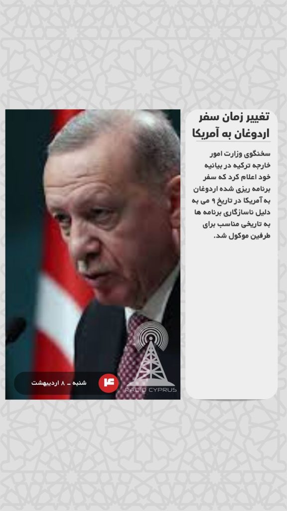 سخنگوی وزارت امور خارجه ترکیه در بیانیه خود اعلام کرد که سفر برنامه ریزی شده اردوغان به آمریکا در تاریخ ۹ می به دلیل ناسازگاری برنامه ها به تاریخی مناسب برای طرفین موکول شد.