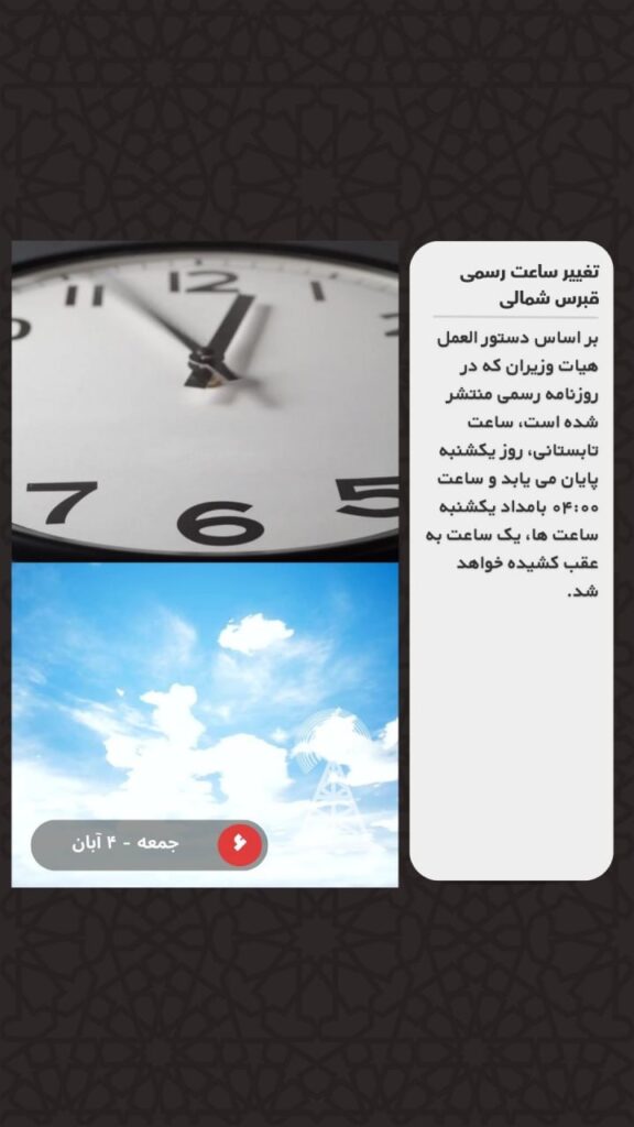 بر اساس دستور العمل هیات وزیران که در روزنامه رسمی منتشر شده است، ساعت تابستانی، روز یکشنبه پایان می یابد و ساعت ۰۴:۰۰ بامداد یکشنبه ساعت ها، یک ساعت به عقب کشیده خواهد شد.