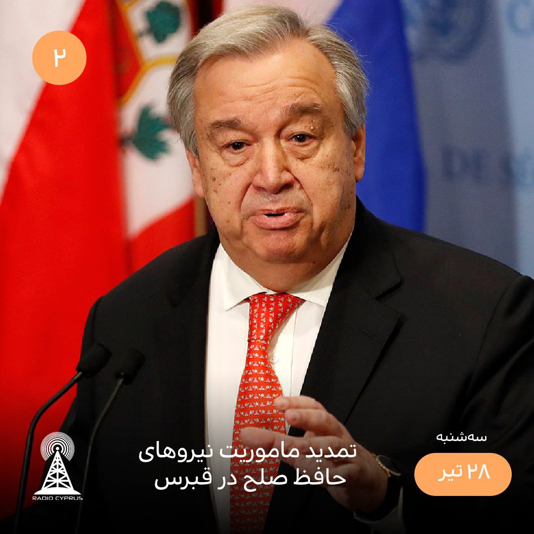 آنتونیو گوترش دبیر کل سازمان ملل متحد در نشست این سازمان در نیویورک به اعضای شورای امنیت توصیه کرد که ماموریت نیروهای حافظ صلح در جزیره قبرس برای شش ماه دیگر (تا پایان ژانویه ۲۰۲۳) نیز تمدید شود. ماموریت فعلی این نیروها در پایان جولای به پایان میرسد. گوترش در گزارش خود در خصوص وضعیت قبرس گفت: در وضعیت فعلی، جهت از سرگیری مذاکرات پیشرفتی مشاهده نمیشود. در چنین وضعیتی شرایط منجر به اقدامات یکجانبه میشود. بدلیل موقعیت استراتژیک منطقه و تاثیر آن روی قبرس، من از بازیگران منطقهای درخواست دارم که خویشتن دار باشند و رویکردی سازنده برای حل مناقشه قبرس اتخاذ کنند.