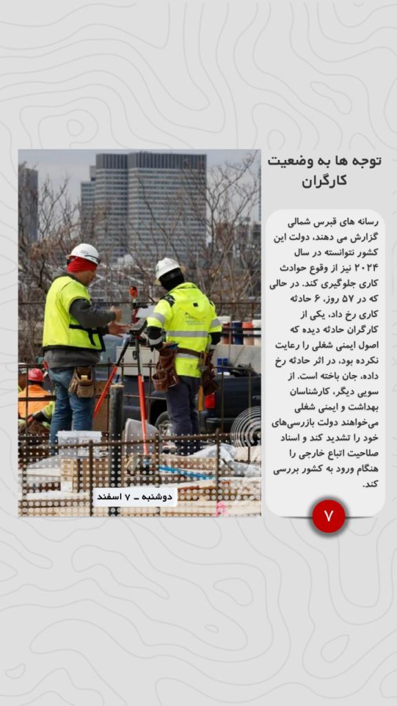 رسانه های قبرس شمالی گزارش می دهند، دولت این کشور نتوانسته در سال ۲۰۲۴ نیز از وقوع حوادث کاری جلوگیری کند. در حالی که در ۵۷ روز، ۶ حادثه کاری رخ داد، یکی از کارگران حادثه دیده که اصول ایمنی شغلی را رعایت نکرده بود، در اثر حادثه رخ داده، جان باخته است. از سویی دیگر، کارشناسان بهداشت و ایمنی شغلی میخواهند دولت بازرسیهای خود را تشدید کند و اسناد صلاحیت اتباع خارجی را هنگام ورود به کشور بررسی کند.