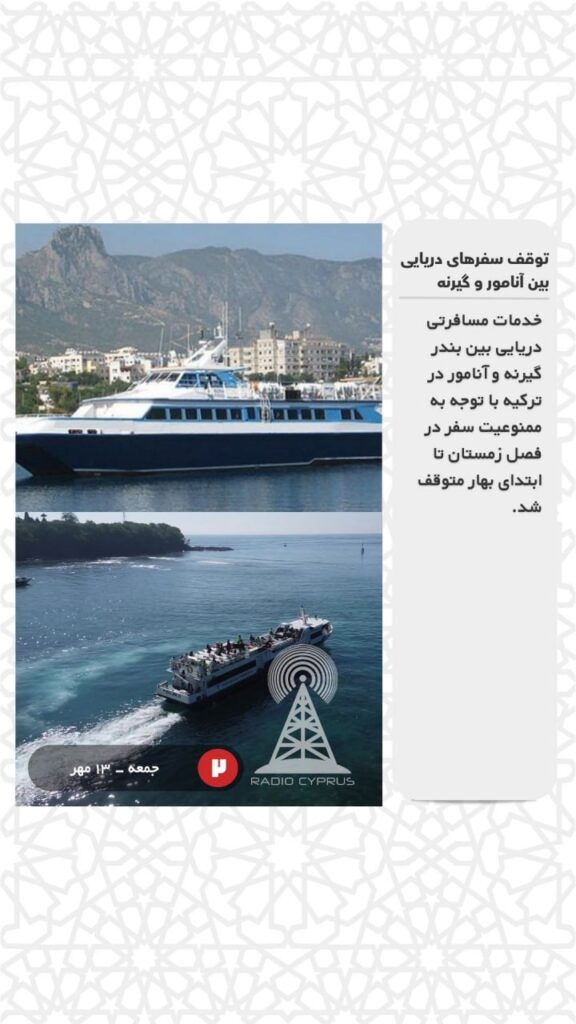 خدمات مسافرتی دریایی بین بندر گیرنه و آنامور در ترکیه با توجه به ممنوعیت سفر در فصل زمستان تا ابتدای بهار متوقف شد.