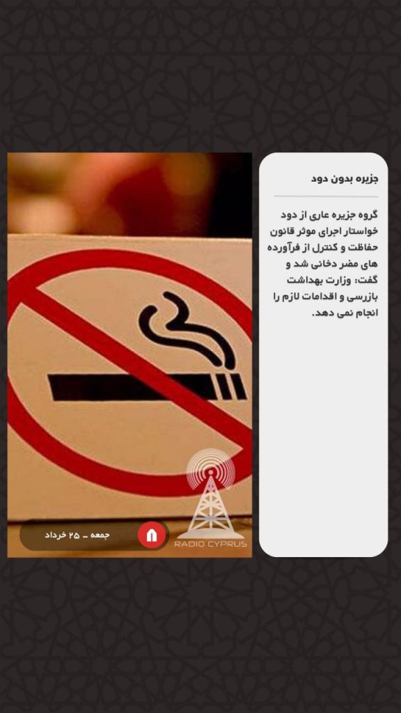 گروه جزیره عاری از دود خواستار اجرای موثر قانون حفاظت و کنترل از فرآورده های مضر دخانی شد و گفت: وزارت بهداشت بازرسی و اقدامات لازم را انجام نمی دهد.