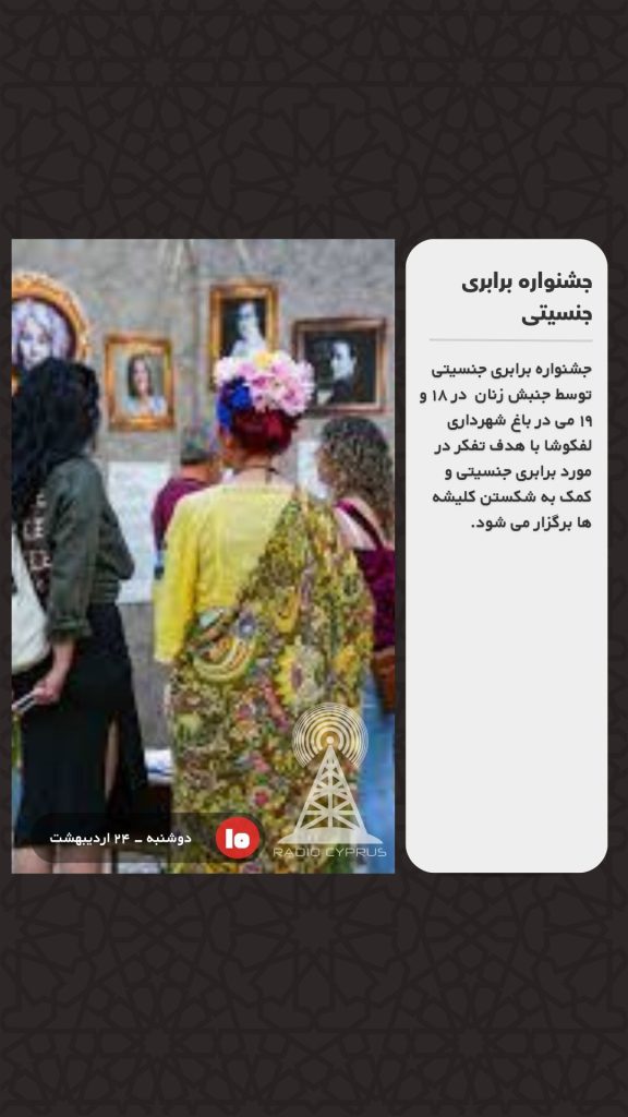 جشنواره برابری جنسیتی توسط جنبش زنان در ۱۸ و ۱۹ می در باغ شهرداری لفکوشا با هدف تفکر در مورد برابری جنسیتی و کمک به شکستن کلیشه ها برگزار می شود.