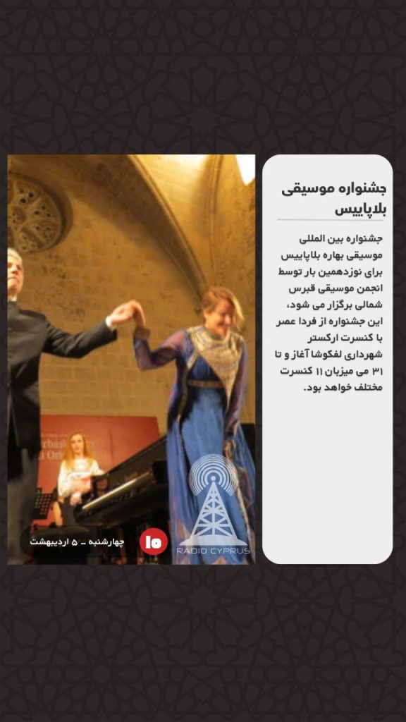 جشنواره بین المللی موسیقی بهاره بلاپاییس برای نوزدهمین بار توسط انجمن موسیقی قبرس شمالی برگزار می شود، این جشنواره از فردا عصر با کنسرت ارکستر شهرداری لفکوشا آغاز و تا ۳۱ می میزبان ۱۱ کنسرت مختلف خواهد بود.