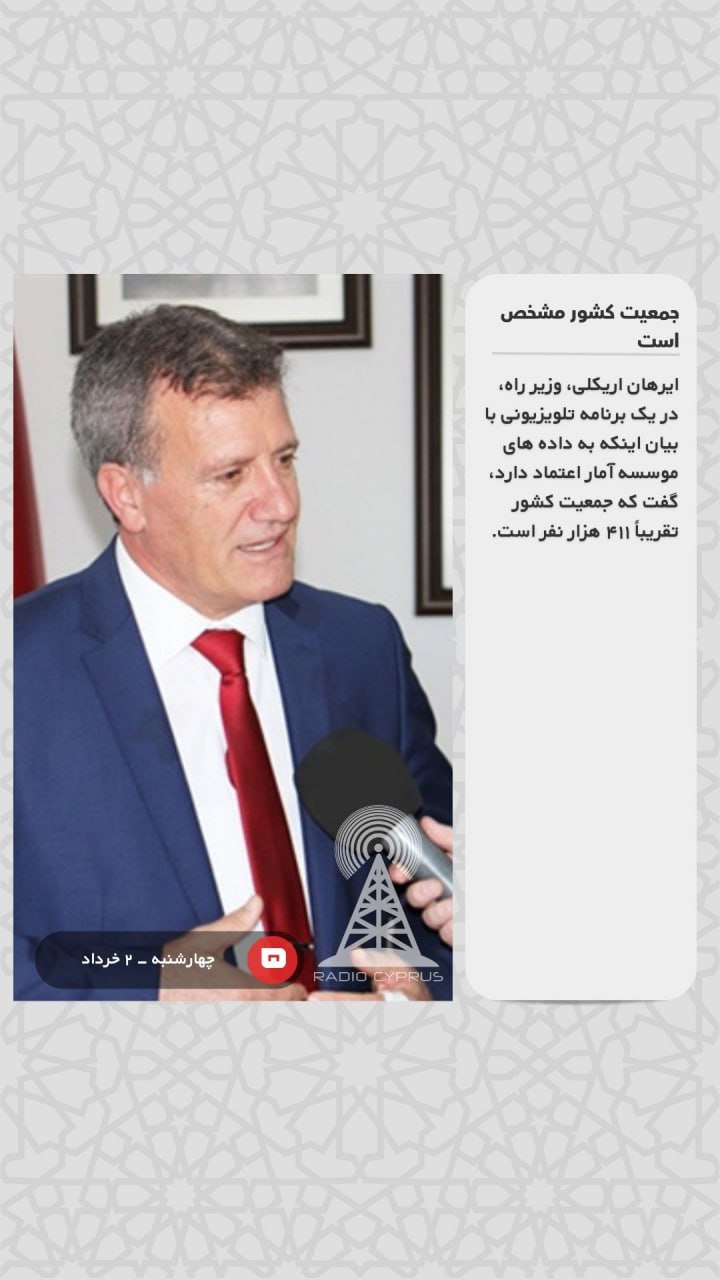 ایرهان اریکلی، وزیر راه، در یک برنامه تلویزیونی با بیان اینکه به داده های موسسه آمار اعتماد دارد، گفت که جمعیت کشور تقریباً ۴۱۱ هزار نفر است.