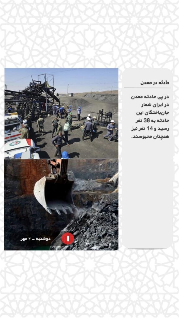 در پی حادثه معدن در ایران شمار جانباختگان این حادثه به ۳۸ نفر رسید و ۱۴ نفر نیز همچنان محبوسند.