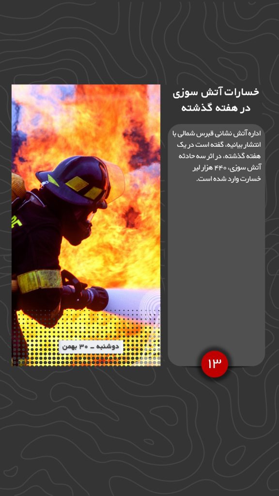 اداره آتش نشانی قبرس شمالی با انتشار بیانیه، گفته است در یک هفته گذشته، در اثر سه حادثه آتش سوزی، ۴۴۰ هزار لیر خسارت وارد شده است.
