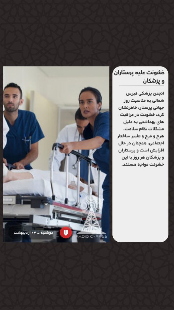 انجمن پزشکی قبرس شمالی به مناسبت روز جهانی پرستار، خاطرنشان کرد، خشونت در مراقبت های بهداشتی به دلیل مشکلات نظام سلامت، هرج و مرج و تغییر ساختار اجتماعی، همچنان در حال افزایش است و پرستاران و پزشکان هر روز با این خشونت مواجه هستند.