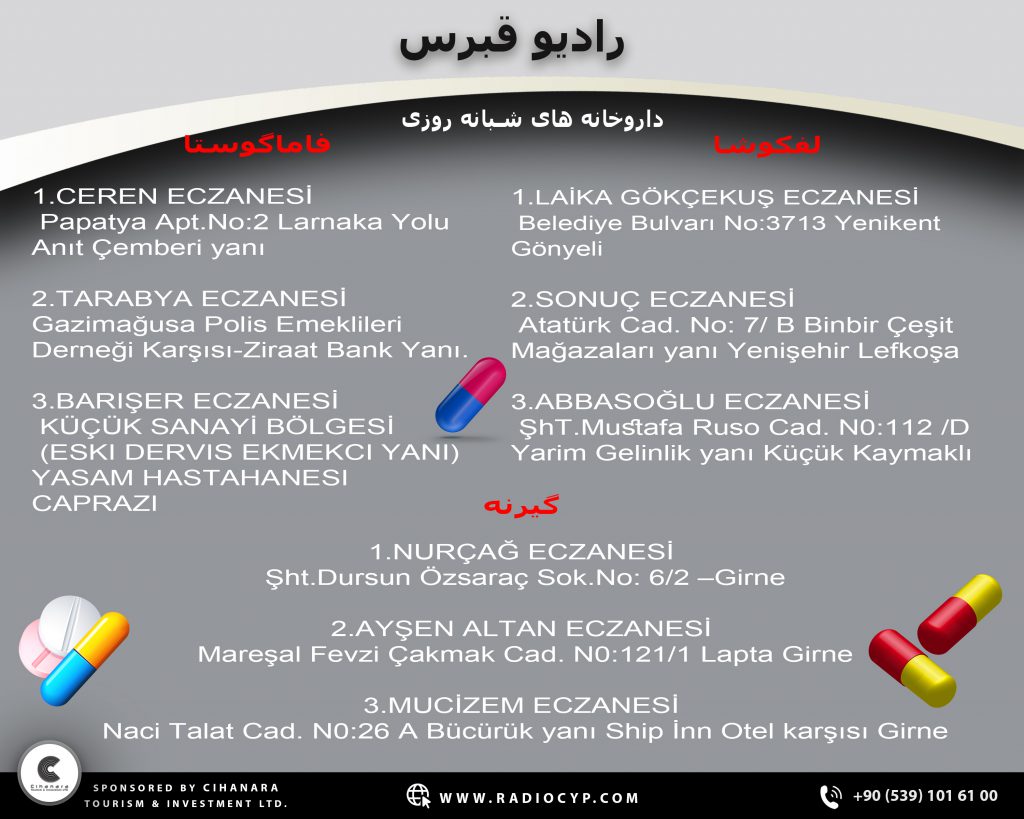 داروخانه های شیفت شبانه امروز ۲۰۲۰/۰۵/۱۳