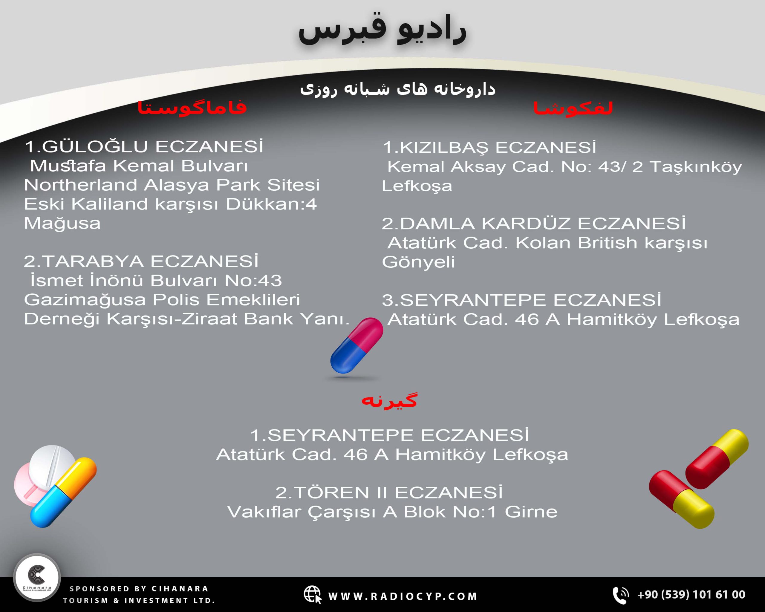 داروخانه های شیفت شبانه امروز ۲۰۲۰/۰۸/۰۱